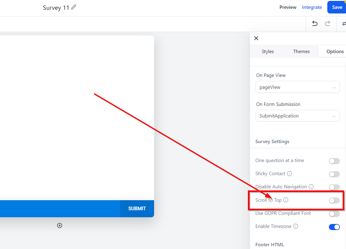 By using this toggle option, you can choose to scroll to the top of the survey.