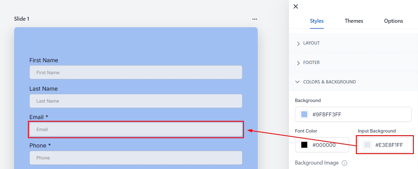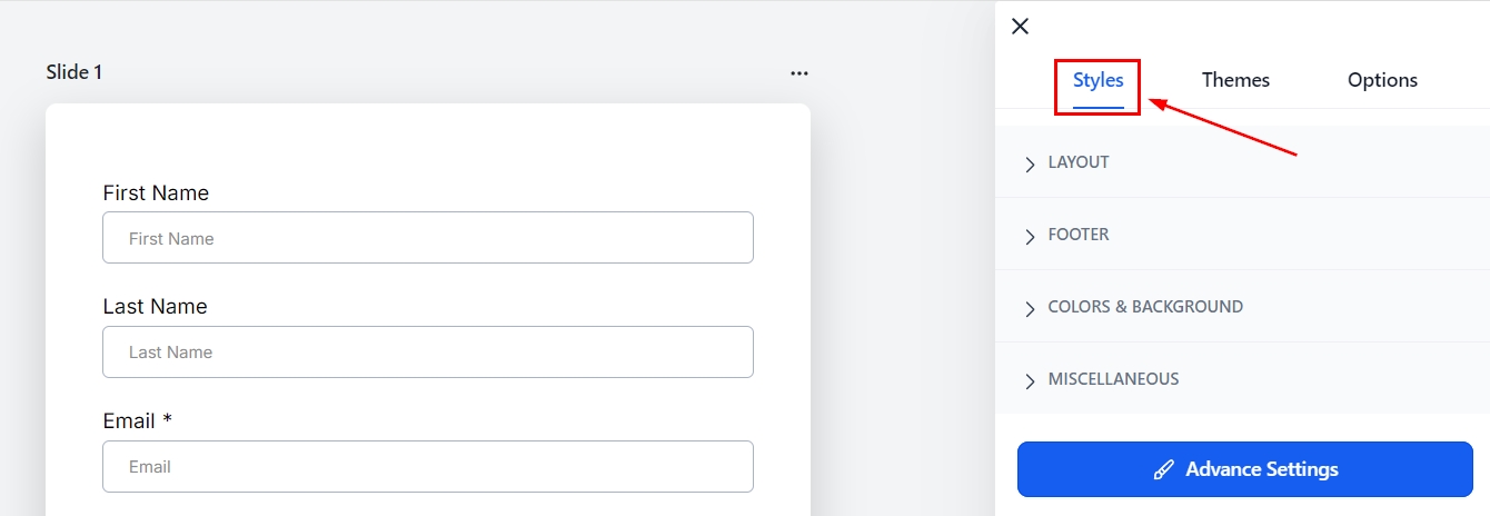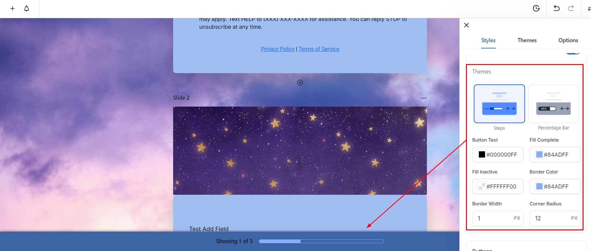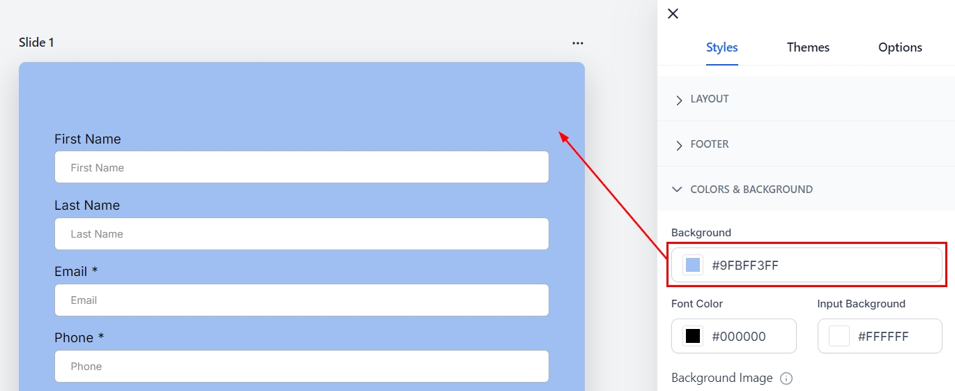 To alter the visual aspects of your Survey, navigate to the Styles Tab within the builder. In this section, you can tailor the appearance of your survey by adjusting elements such as colors, borders, and additional design features. Customizing the look of your survey allows you to create a cohesive and aesthetically pleasing user experience that aligns with your brand identity.