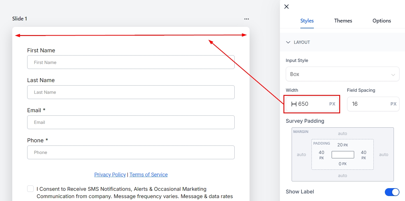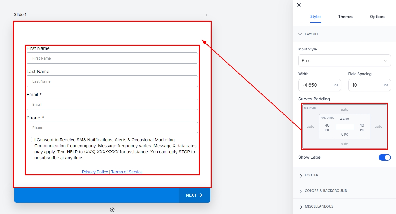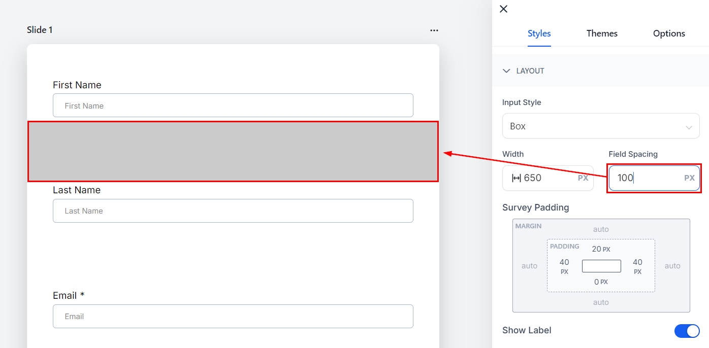 Field Padding: This adds space between fields to prevent overcrowding in the survey.
