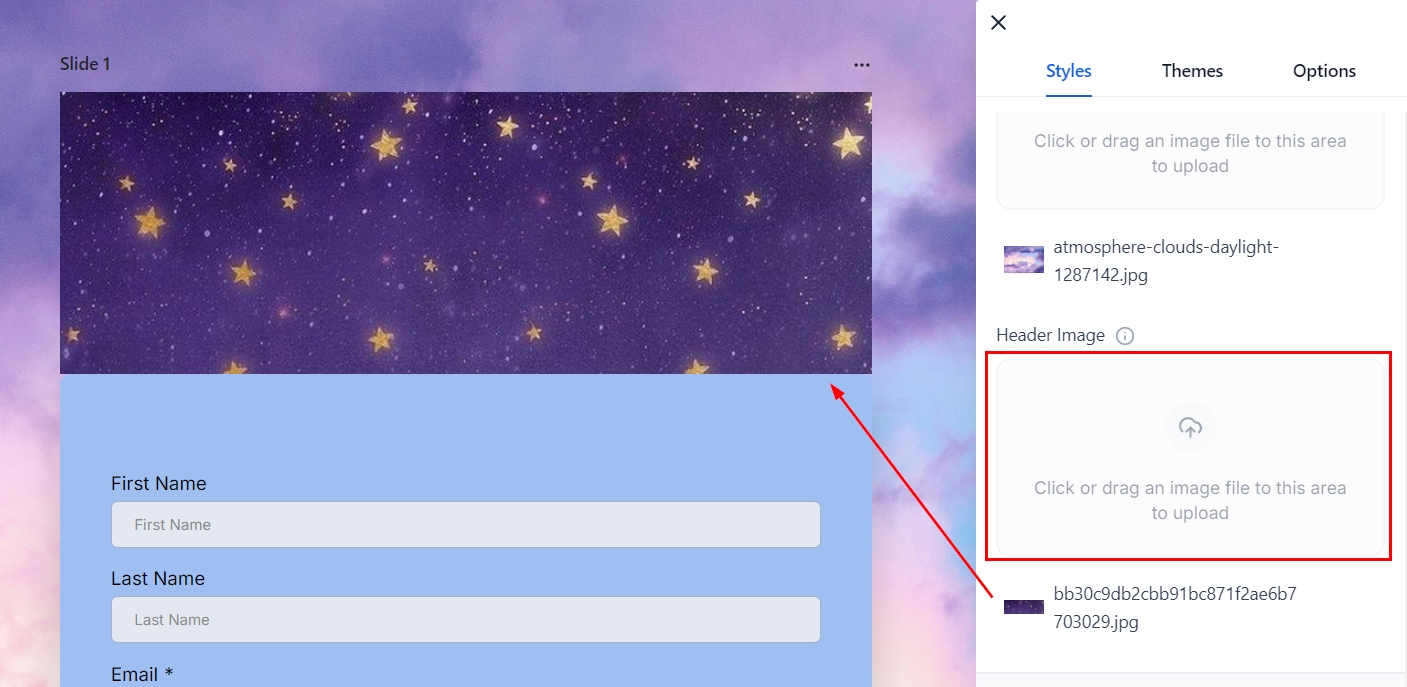 The header image is designed to cover the entire width of the survey and remains positioned at the top of the survey.