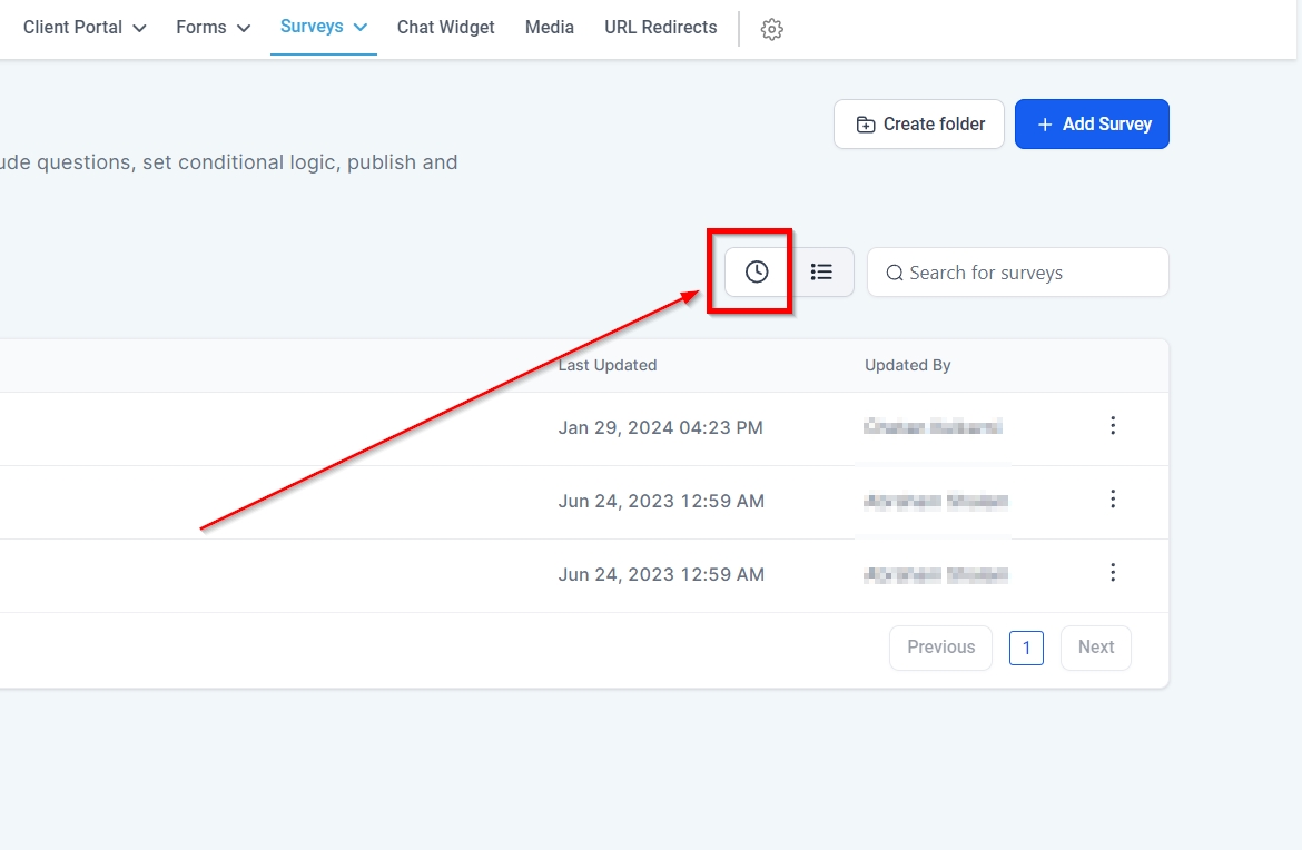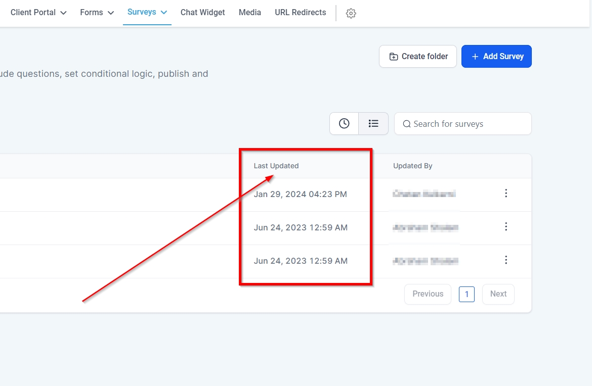 This column shows you the date and time each survey or a folder was updated.