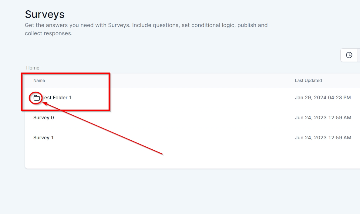 All of the survey folders you have created will have the folder icon like this.