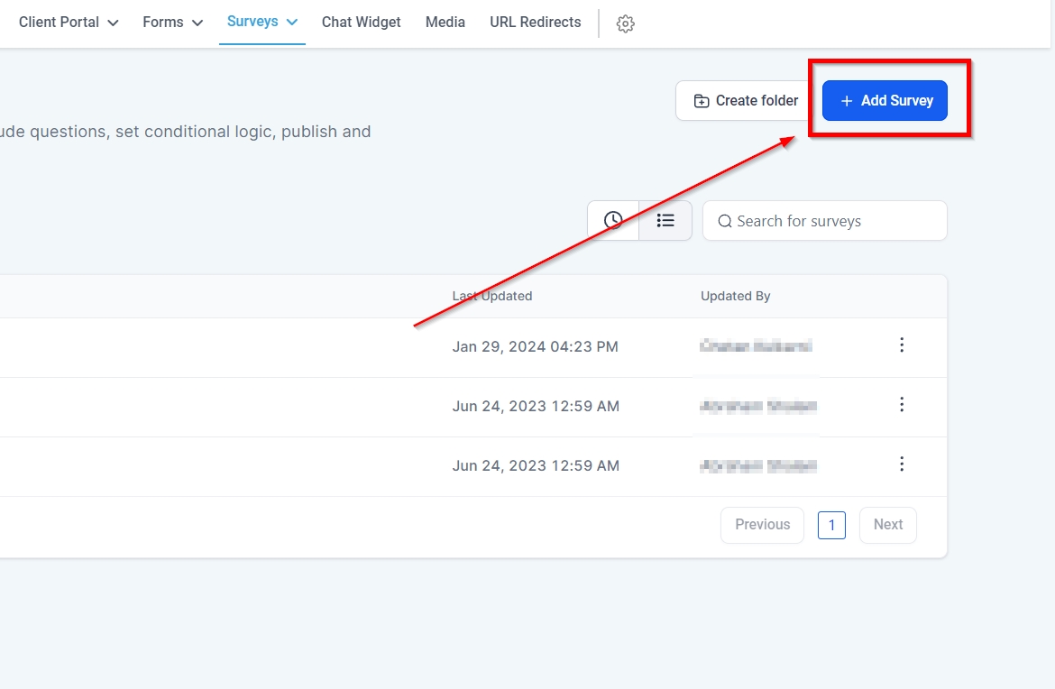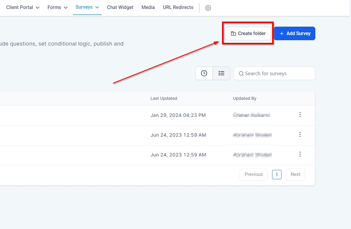 You can see the name of each Survey or Survey Folder displayed here.