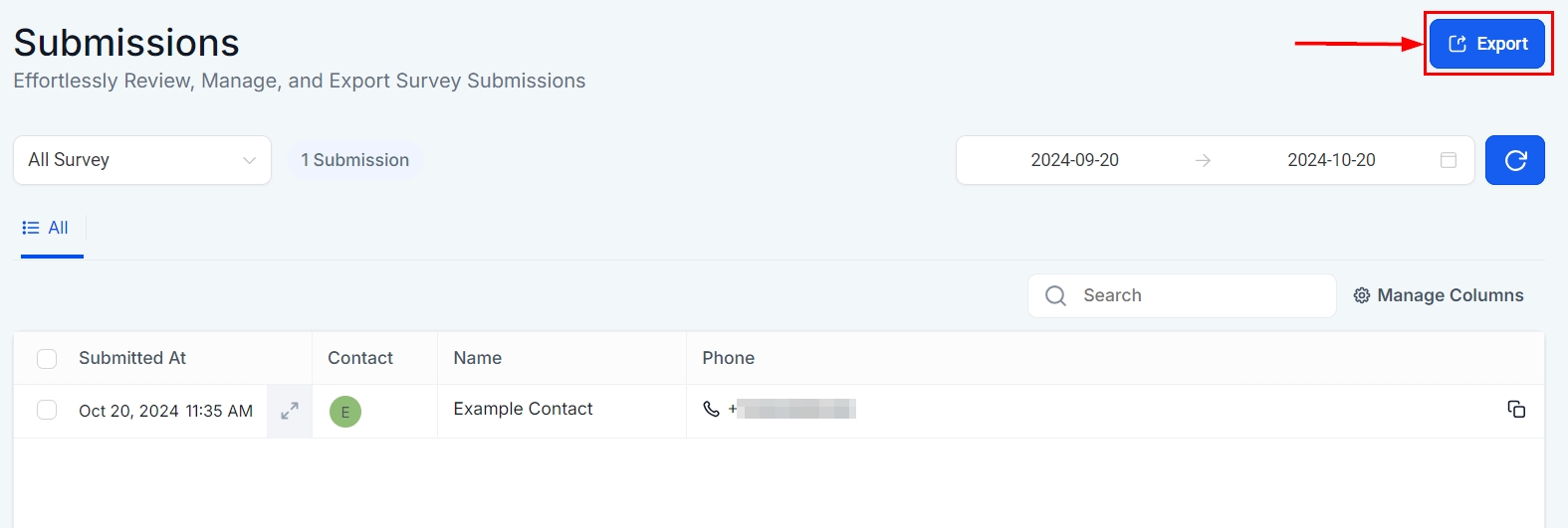 The Submissions section within Surveys allows you to store and organize all responses from your surveys. This feature enables you to review collected data, generate reports, and remove any unnecessary information.