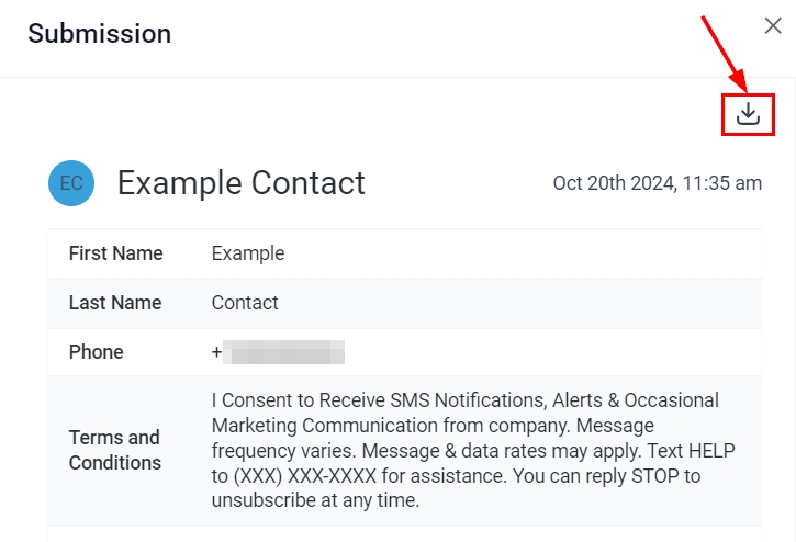 Downloading Submissions: To download an individual submission, click the download icon after the entry is selected. Alternatively, you can download all selected submissions as a .csv file, ideal for storing in your records.