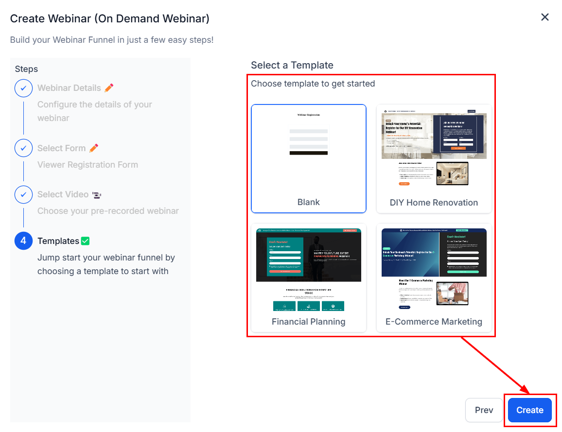 Next, select the form to be used for the webinar registration of your guests, then proceed to the next step.