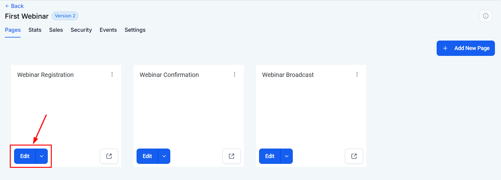 To create an On-Demand Webinar, navigate to the Webinars tab within Sites, then click the New Webinar Funnel option.