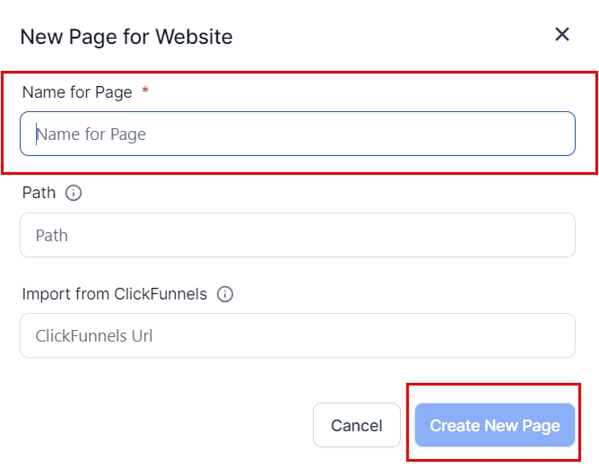 Name the page and choose a corresponding path if you desire. If a path is not chosen, the system will automatically create one based on the name of the page.