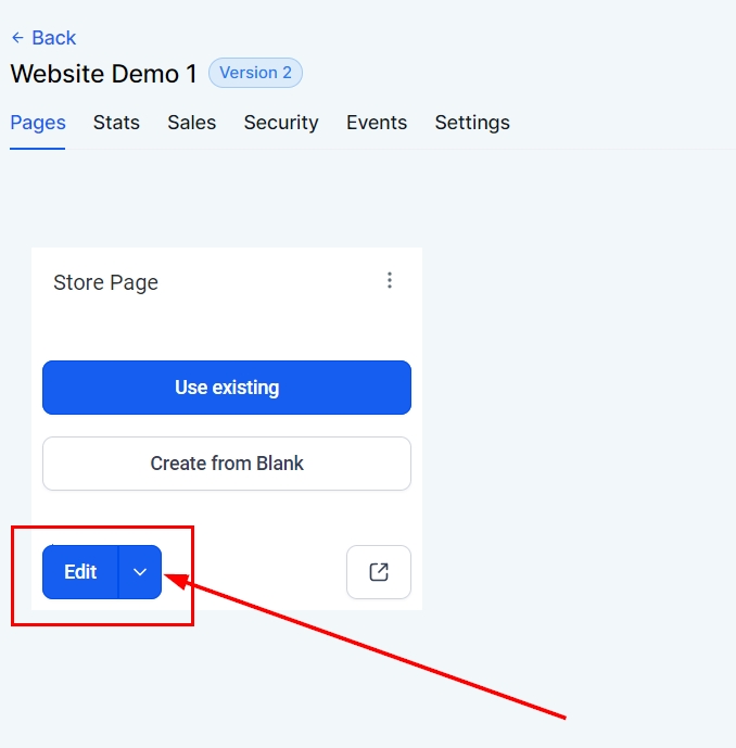 Click on “+Add New Page” to begin building your store with the website builder.