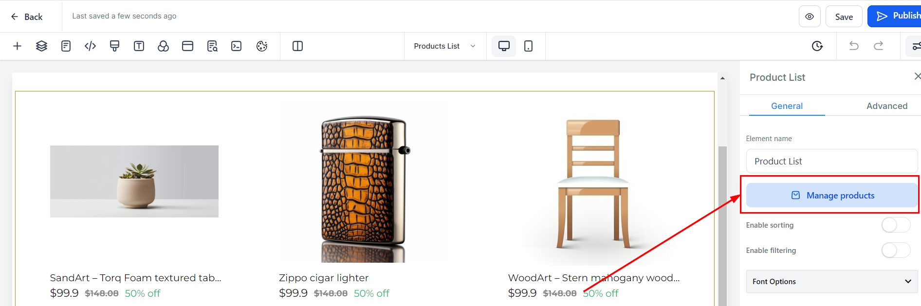 Manage your product listings by clicking on the “Manage Products” button, where you can add or delete products as needed.