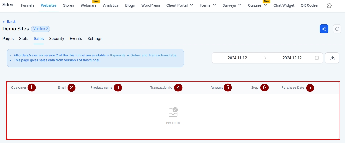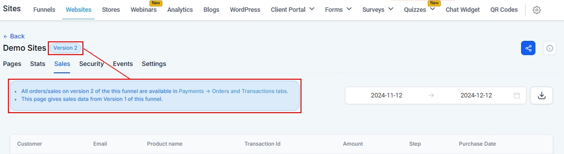 Sales data is a valuable resource for understanding how your Website performs and where improvements can be made. This guide will help you navigate the sales features available for Version 1 (Pre-upgraded) websites, while also directing you to the Payments > Transactions tab for sales data from Version 2 (Upgraded) websites.