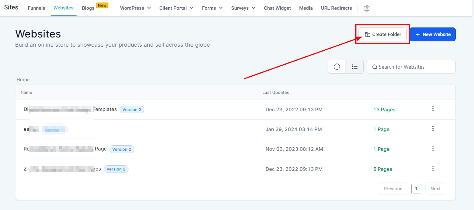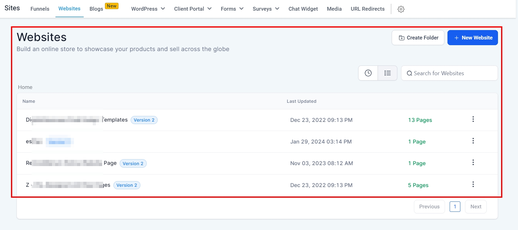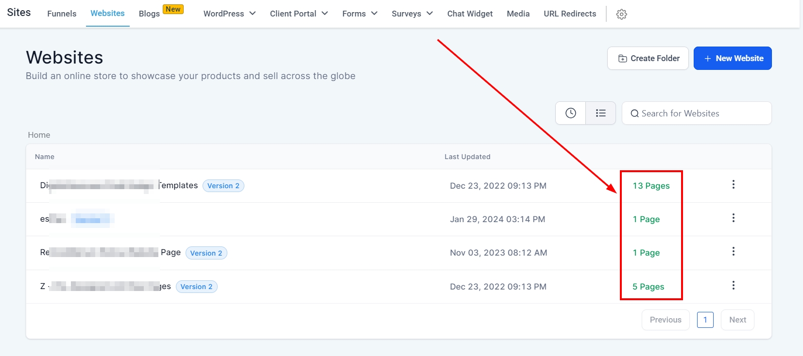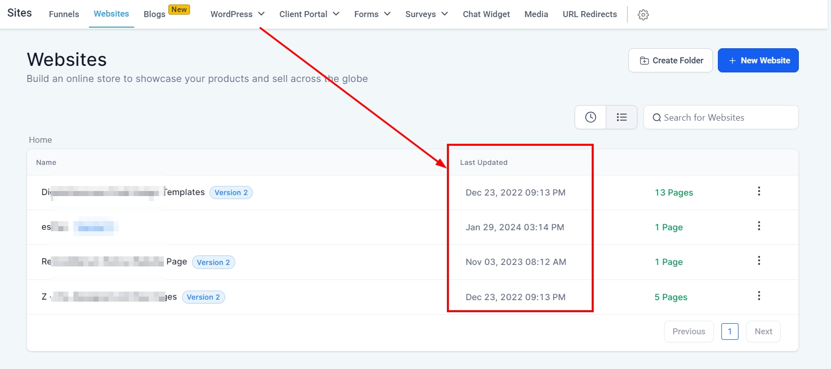 Here you can quickly find out the specific website from the list of all of the websites you have created inside of your CRM.