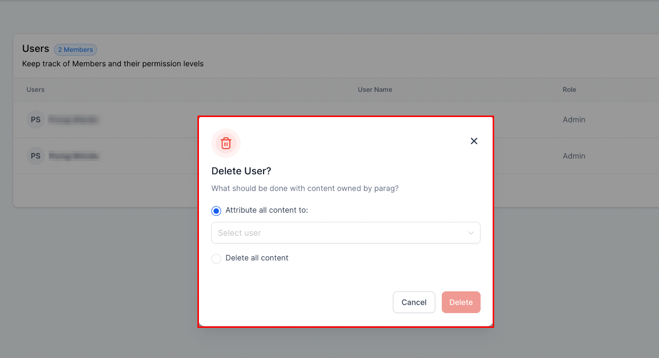To bolster security and ensure seamless content management, it is mandatory to assign a new admin user before deleting an existing admin, ensuring smooth transitions in user and content management.