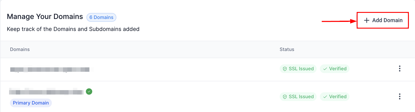 The Domain Connect integration is designed to streamline domain management by minimizing the need for manual configurations. To get started, simply click the Add Domain button within the Manage Your Domains section.